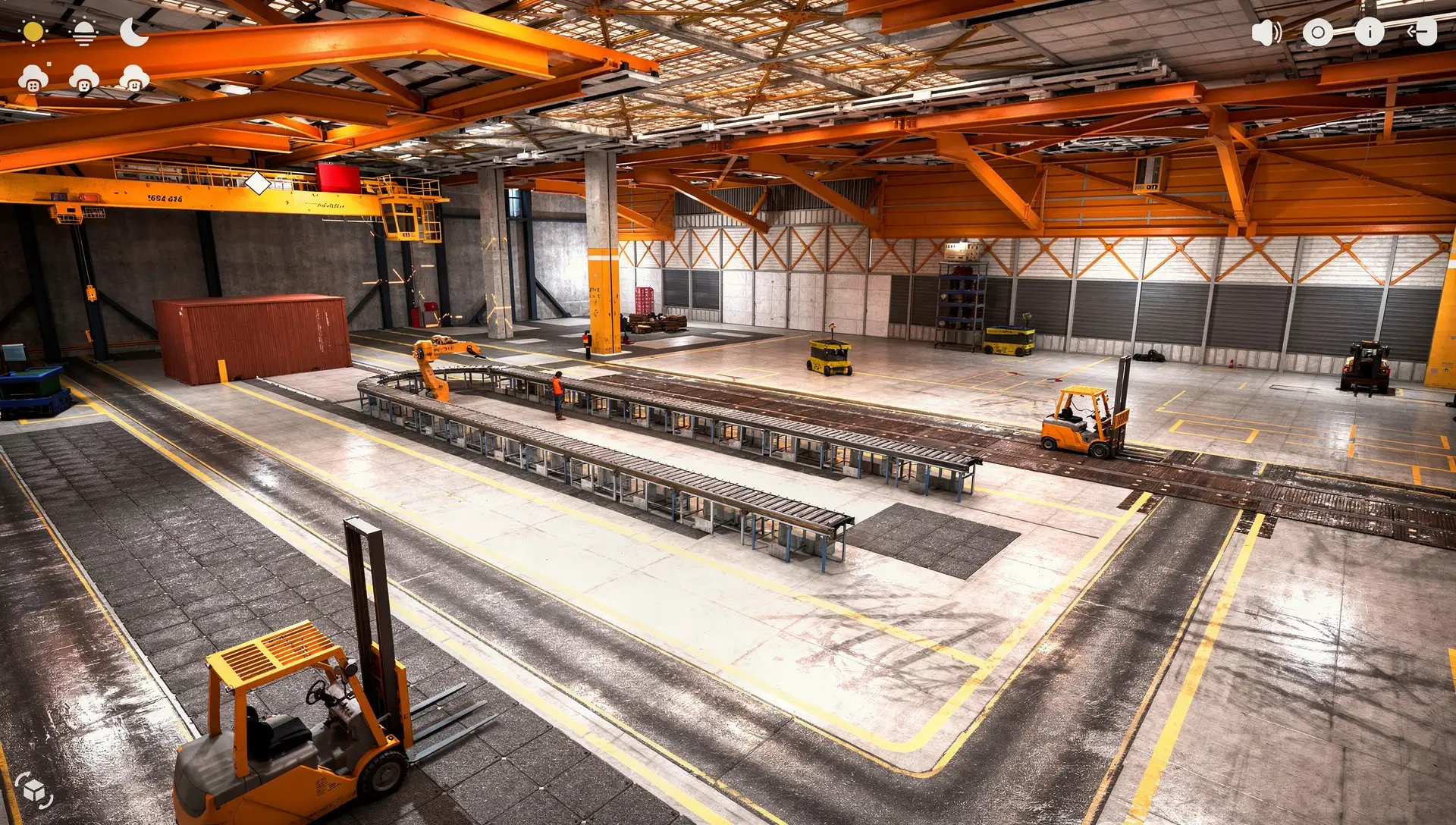Interactive 3D application presenting factory layout, production flow, and key systems.